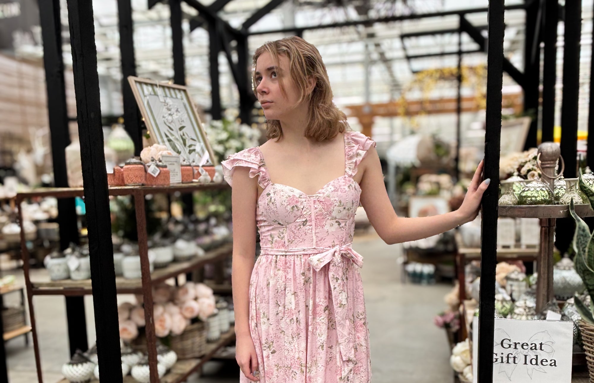 Natural Floral Smocked Waist Maxi Skirt